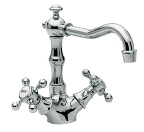 - Includes metal pop-up drain and metal cross handles with hot/cold porcelain index buttons